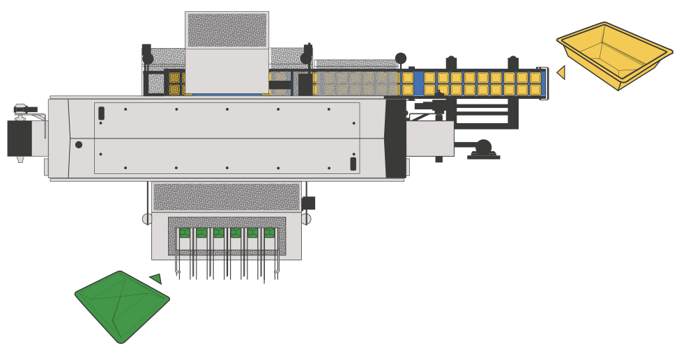 It is designed to optimize the production area, while allowing production with unparalleled speed. It can reach up to 13 cycles per minute.
